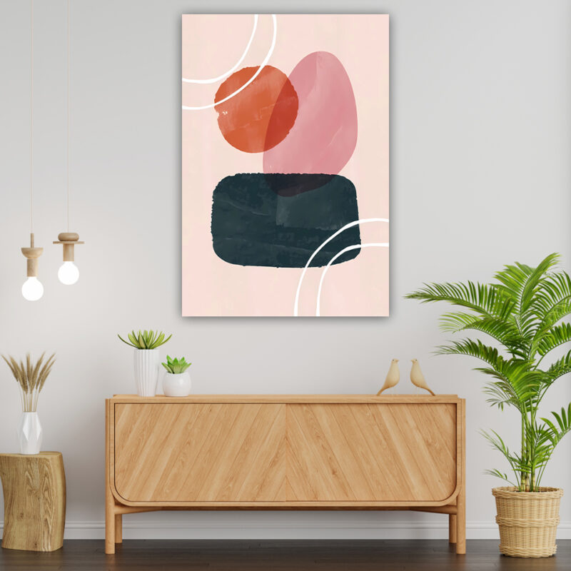 Plongez dans l’univers captivant de « Fusion Élégante », une œuvre artistique imprimée sur toile qui marie avec élégance l’art abstrait et le design contemporain. Le tableau met en scène une composition dominée par des formes variées, où les cercles et les lignes se distinguent par leur éclat. Un cercle rouge, sublimé par des lignes blanches, crée un effet visuel captivant au cœur de l’œuvre. En arrière-plan, des teintes de noir et de rose s’entrelacent pour former un contraste intrigant.